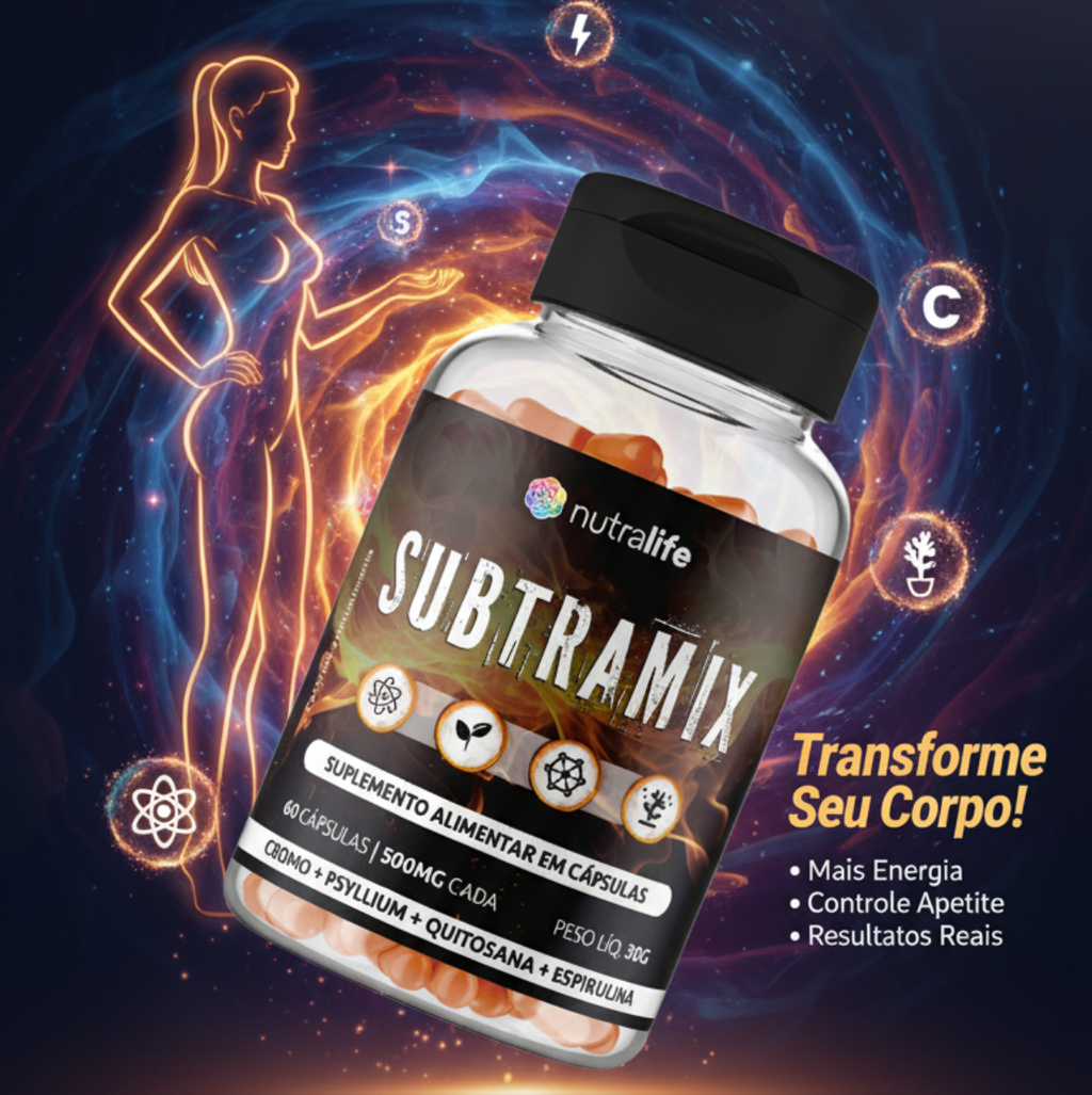 Subtramix não é mais um suplemento qualquer. É a sua arma secreta para dominar a fome e eliminar o que não te pertence. Uma fórmula de alta performance que atua como um verdadeiro "detox em cápsulas".